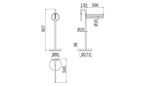 Inda Stand with 3 Towel Holders; Chrome