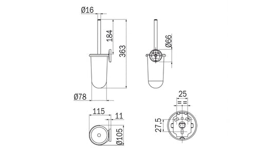 Inda HOTEL Wall Mounted Toilet Brush; Chrome